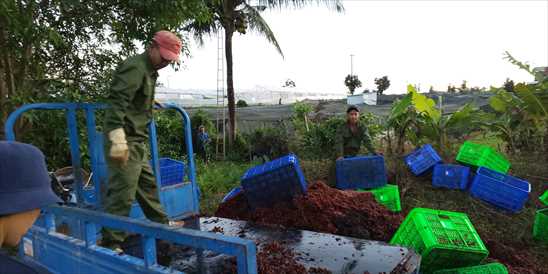 この場所は、コーヒーチャリーの皮などを再利用して有機肥料を作る場所になります。